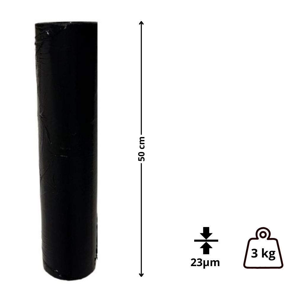 Folia STRETCH czarna beztubowa 3kg, 50cmx250m, 23μm