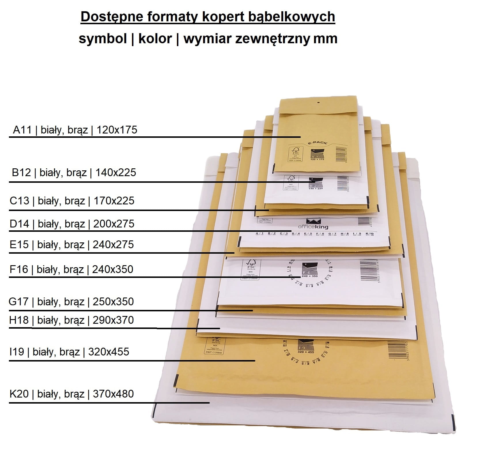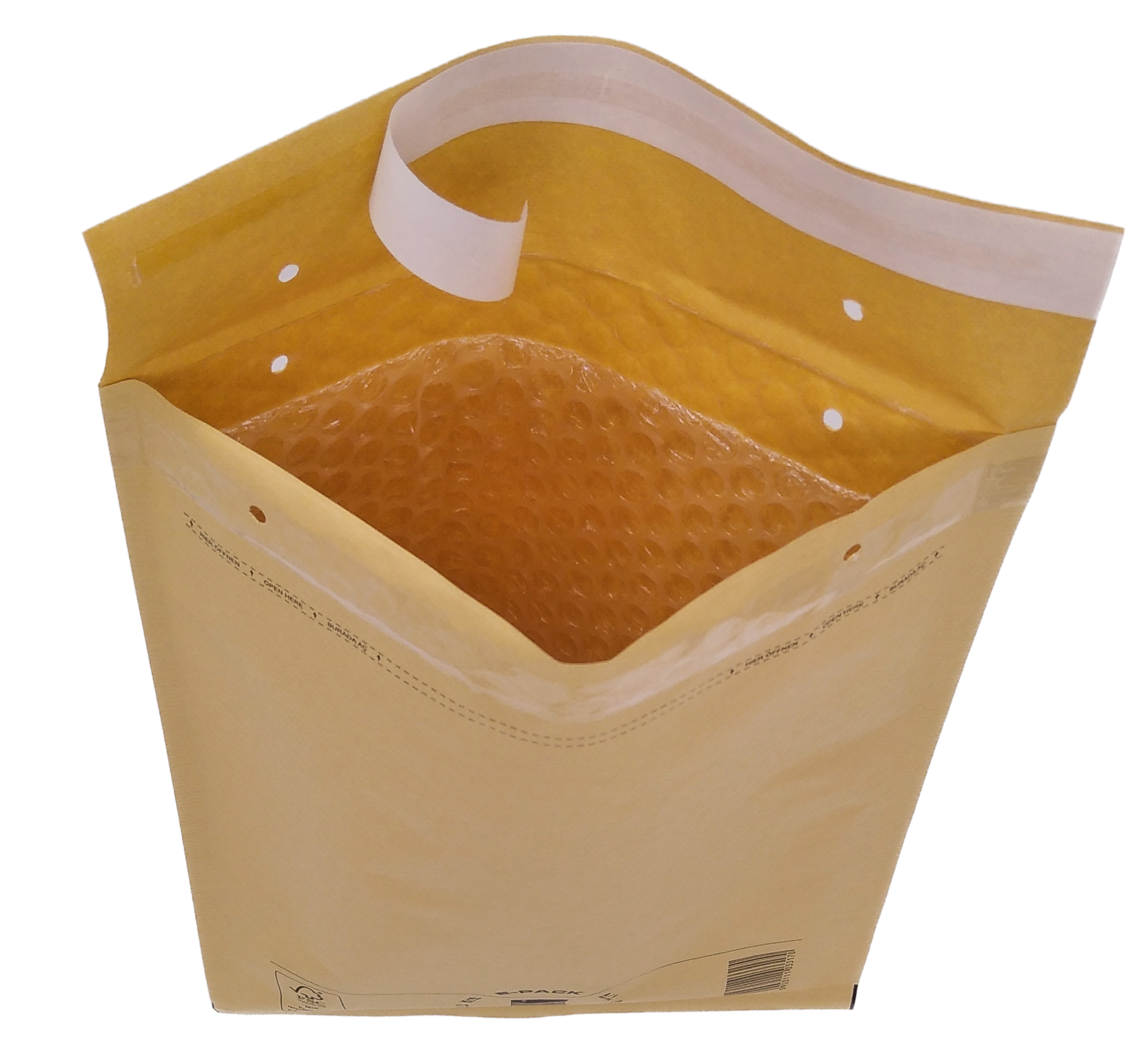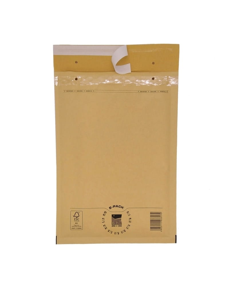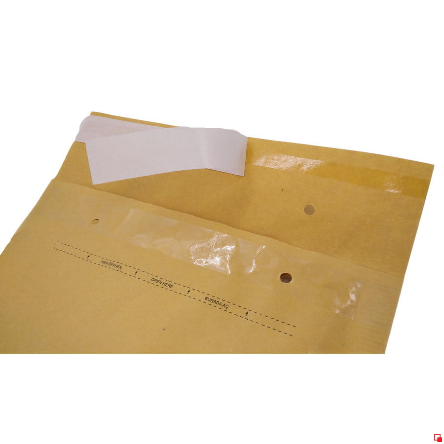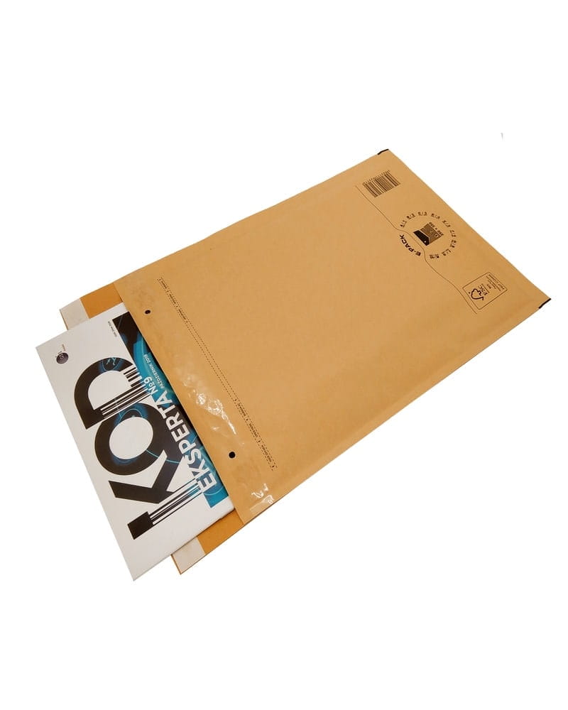 - Koperta składa się z grubej 50μm folii bąbelkowej pokrytej powlekanym, odpornym na zachlapanie papierem typu kraft.