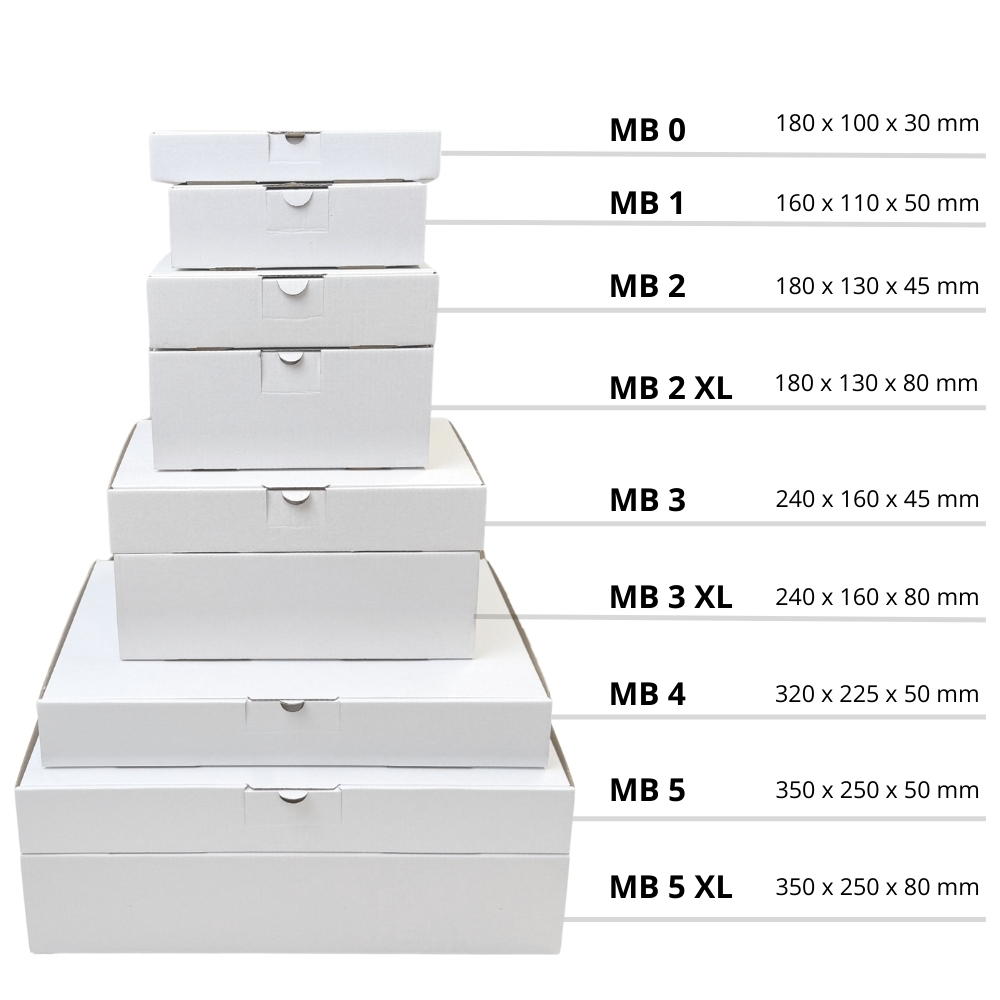 Mały karton fasonowy w formacie A6 nadaje się świetnie do wysyłki wydruków w odpowiednim formacie, części elektronicznych, elektrycznych czy motoryzacyjnych, tuszy do drukarek. Pasować będą także akcesoria do telefonów komórkowych czy same telefony w opakowaniach pierwotnych - wszystko do wysokości pięciu centymetrów. Białe opakowanie w estetyczny sposób pomieści różne drobne produkty. Jako karton wysyłkowy MB 1 wyróżnia się prostą, trwałą i wytrzymała konstrukcją z fali E. Jego konstrukcja wg FEFCO 0426 jest prosta i szybka, wystarczy parę ruchów rękoma. Bezpieczeństwo wysyłki zwiększa zintegrowany specjalnie wycięty zamek, którym można zamknąć opakowanie fasonowe nawet bez używania taśmy klejącej. Wpływa to pozytywnie na komfort użytkowania przy wysyłce książek, broszur czy wydruków lub innych artykułów które dzięki temu unikną ryzyka niechcianego kontaktu z taśmą. Przyspiesza to przygotowanie przesyłki, zmniejsza ilość zużywanej taśmy zwiększając jednocześnie wygodę klienta - opakowanie MB 1 można łatwo otworzyć bez konieczności używania noża czy nożyczek.